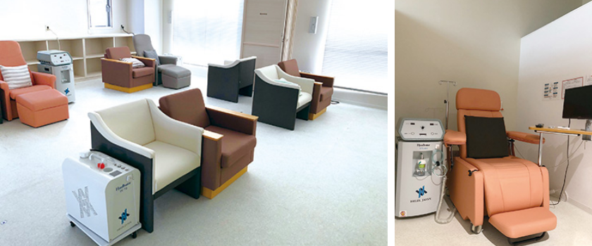 水素ガス吸入療法の専用ルームは、個室タイプと、広々としたサロンタイプの2タイプ。