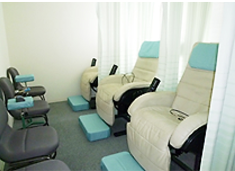 手術後のリカバリー室は、心身安らぐ、アイボリーとティファニーブルーのリクライニング。
